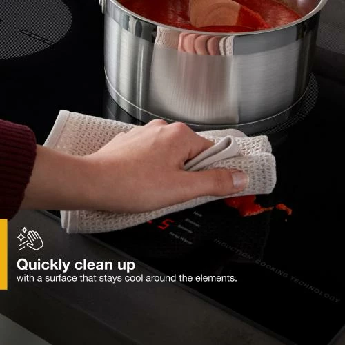 Induction technology keeps the cooktop surrounding the elements cool, helping prevent baked-on messes. With fewer messes, you can clean the touch-activated controls on the cooktop as easily as you use them.